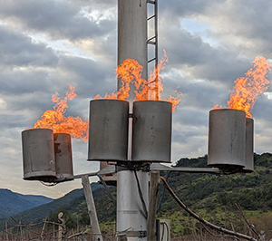 El calefactor central complementa las máquinas de viento para combatir heladas particularmente severas, como aquellas de características advectivas (polares), en donde la capa de inversión térmica no existe o está demasiado alta.